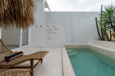 Outside, you'll discover the plunge pool of our villa, offering a perfect place to take a refreshing dip in the afternoon, after a long day out shopping or exploring all the Island has to offer.