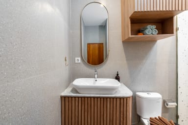 Our Villa is located at the entrance of Jalan Batu Bolong in the trendy neighborhood of Canggu. You will find plenty of restaurants, shops, and a grocery store within walking distance, while the beach is a short 5min drive away. The airport is 40min - 1 hour drive away (might vary depending on traffic)
