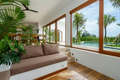 Nyanyi Beach is just 2 km away, ideal for quiet coastal walks and beautiful sunsets. The famous Tanah Lot Temple, one of Bali’s most iconic landmarks, is only a 10-minute drive from the villa. For guests who wish to explore livelier scenes, the vibrant cafes, restaurants, and shops of Canggu are around 30 minutes away by car.