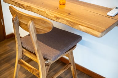 On the second floor, you will also find a spacious balcony with a sitting area, offering an additional relaxing spot to enjoy fresh air and quiet moments overlooking the surroundings.