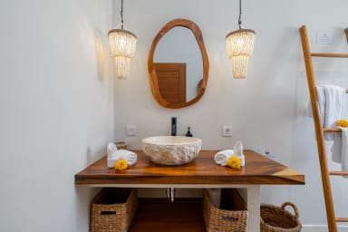 The villa is approximately 23 km from Ngurah Rai International Airport, offering a convenient yet tranquil retreat away from the main tourist crowds.